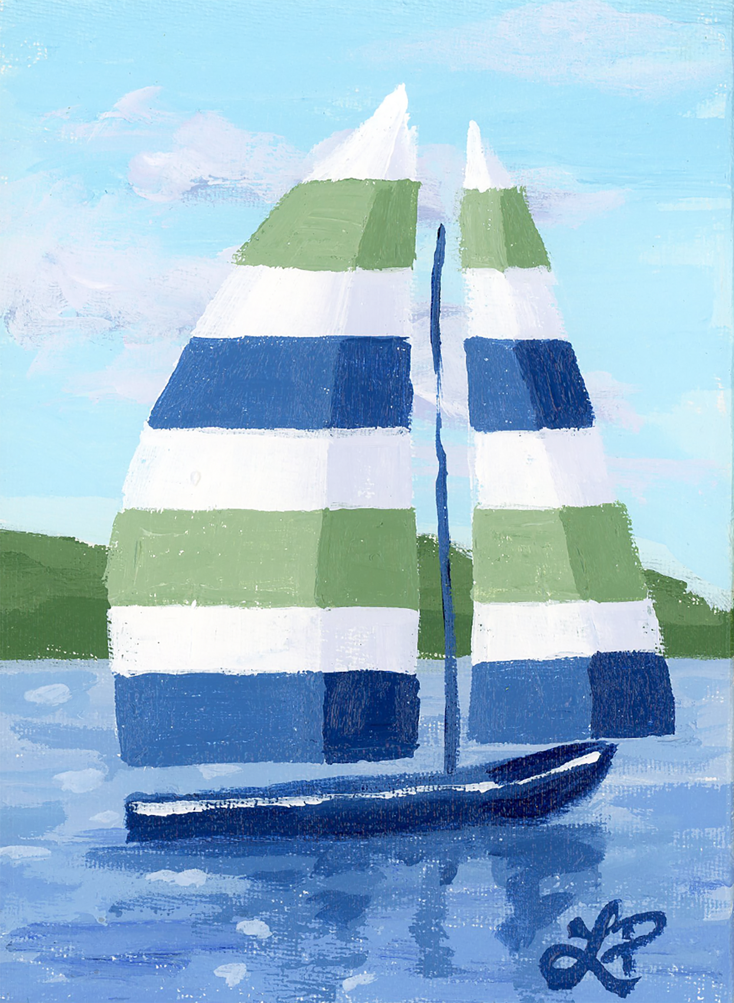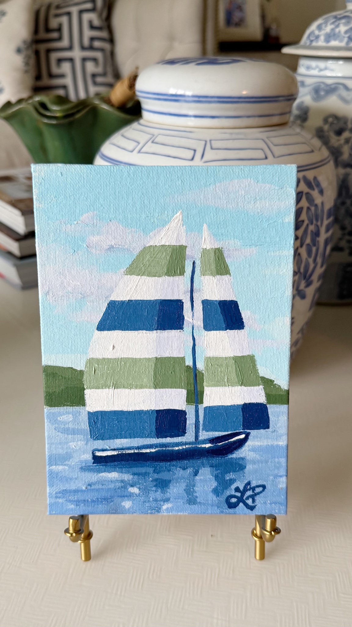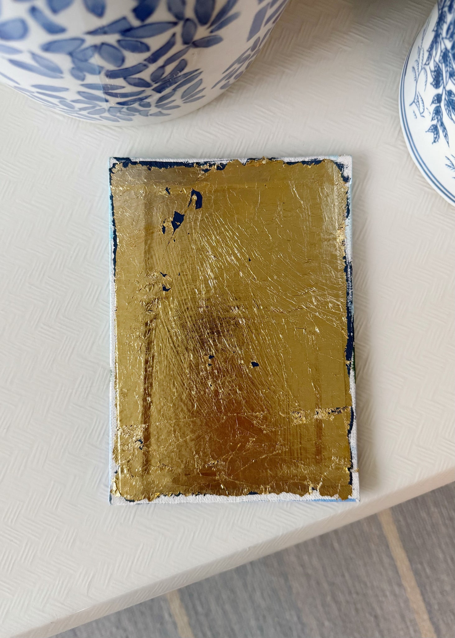 5x7 original acrylic painting on canvas board. The backside of this painting comes hand painted navy with gold foil.